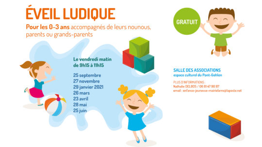 Pour les 0/3 ans, des activités gratuites ont lieu sur Larré le vendredi matin de 9h15 à 11h15
